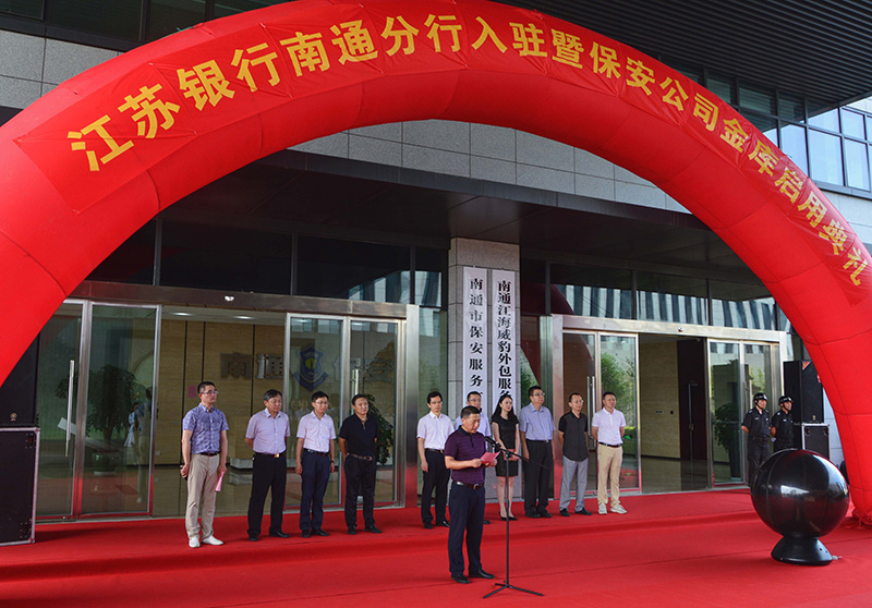 7月28日上午,南通市保安服務有限公司舉行“江蘇銀行南通分行入駐暨保安公司金庫啟用典禮”。市人民銀行工會主任季步高、江蘇銀行南通分行行長艾晨、城建集團副總經理董新平等領導出席典禮。