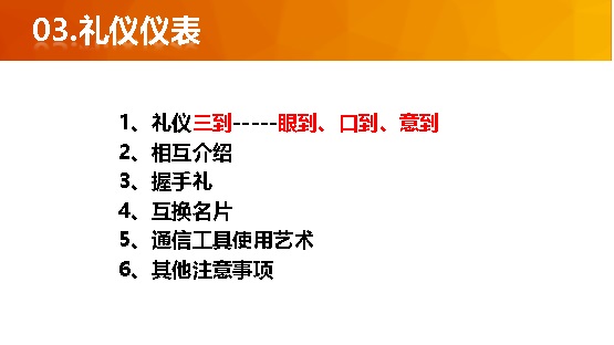 通過此次培訓(xùn),進(jìn)一步引導(dǎo)員工養(yǎng)成講文明、重禮儀的良好習(xí)慣,提升文明禮儀素養(yǎng)的同時為公司精神文明建設(shè)起到了很好的推動作用。