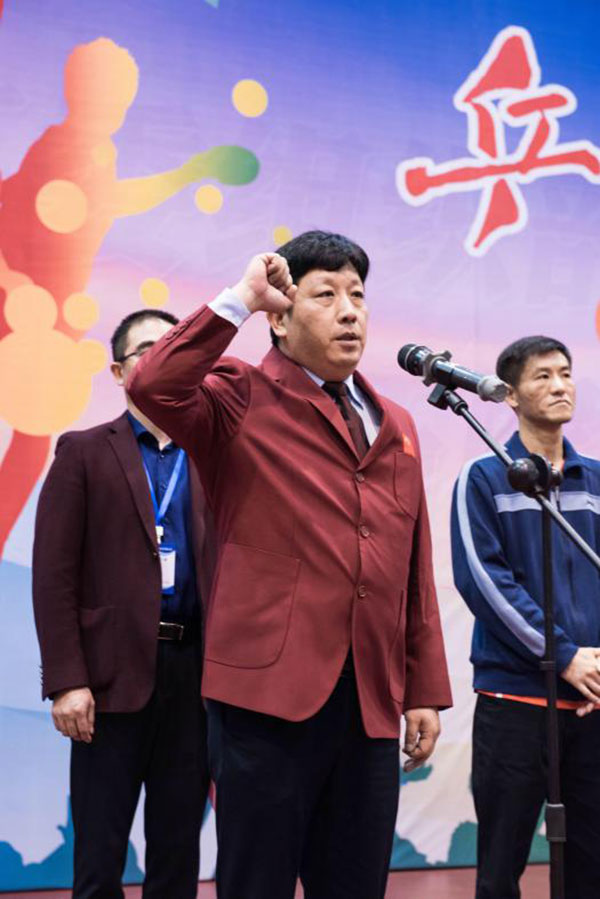城建集團(tuán)代表隊(duì)的嚴(yán)志忠代表運(yùn)動(dòng)員宣誓,白冰代表全體裁判員宣誓。