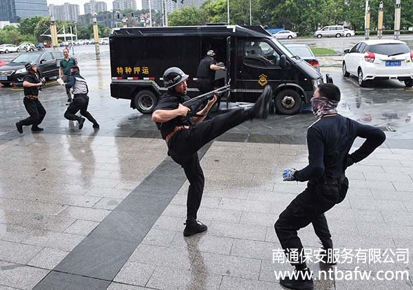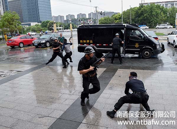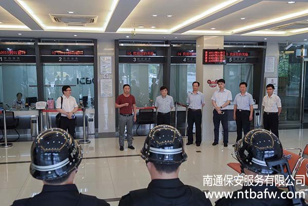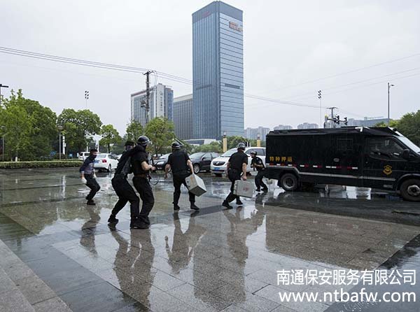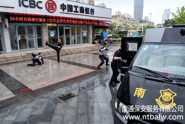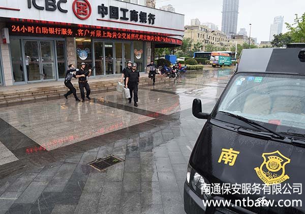 6月24日下午15:30,南通市保安服務(wù)有限公司押運(yùn)分公司在工商銀行開6月24日下午15:30,南通市保安服務(wù)有限公司押運(yùn)分公司在工商銀行開發(fā)區(qū)星湖支行進(jìn)行押運(yùn)突發(fā)事件應(yīng)急處置演練。南通城建集團(tuán)副董事長(zhǎng)姚曉明,工行內(nèi)控合規(guī)部(安全保衛(wèi))總經(jīng)理王大勇、副總經(jīng)理茅建平等領(lǐng)導(dǎo)在公司領(lǐng)導(dǎo)的陪同下到現(xiàn)場(chǎng)觀摩。